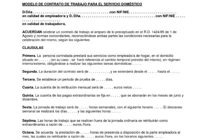 MODELO DE CONTRATO DE TRABAJO PARA EL SERVICIO DOMESTICO