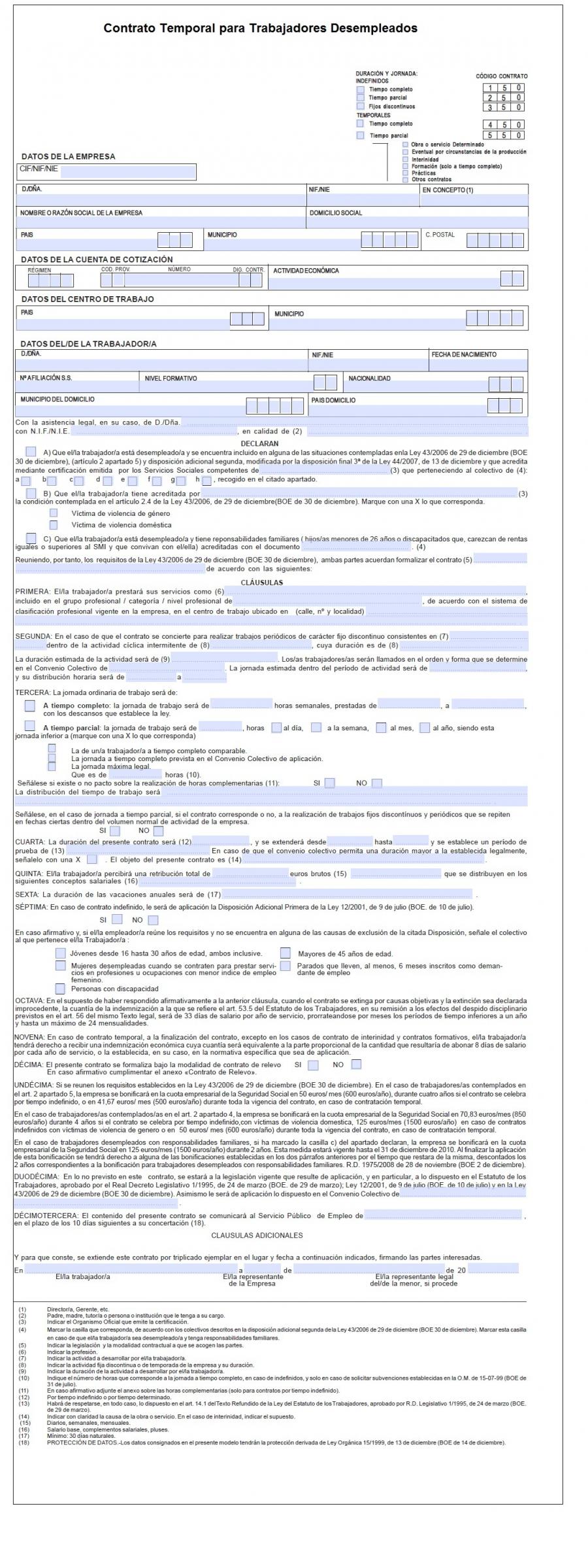 El modelo que debe de tener un contrato temporal para aquellos desempleados que esten en situación de exclusión social, es el siguiente: