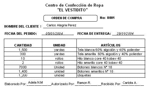 A continuación un ejemplo de una orden de comprar, de tal forma que se tenga conocimiento de este para ser utilizado como modelo: